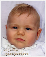 Kiedy siedzieliśmy przy jej biurku (Ty siedziałeś u taty na kolanach) położyłeś sobie obie raczki na blacie i słodko patrzyłeś się na panią. Kiedy pani się na Ciebie spojrzała i gugnęła Ty odwzajemniłeś się ślicznym uśmiechem - jesteś bardzo rezolutnym chłopcem:)